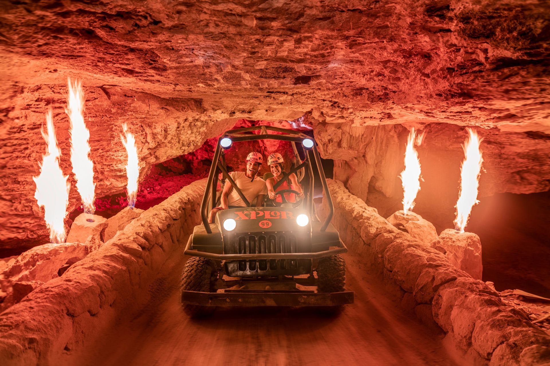 Siente la emoción de descender por el Toboganxote, un tobogán acuático 5 en 1 que termina en una divertida alberca de olas. Súbete a un vehículo anfibio y recorre la selva, vuela bajo el cielo estrellado en las tirolesas, descubre el mundo subterráneo de la Riviera Maya entre ríos de estalactitas nadando o remando, y lánzate a un cenote en una hamaca para un chapuzón inolvidable.